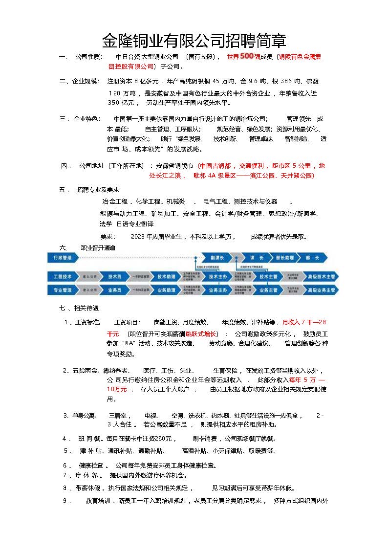 金隆铜业有限公司招聘
