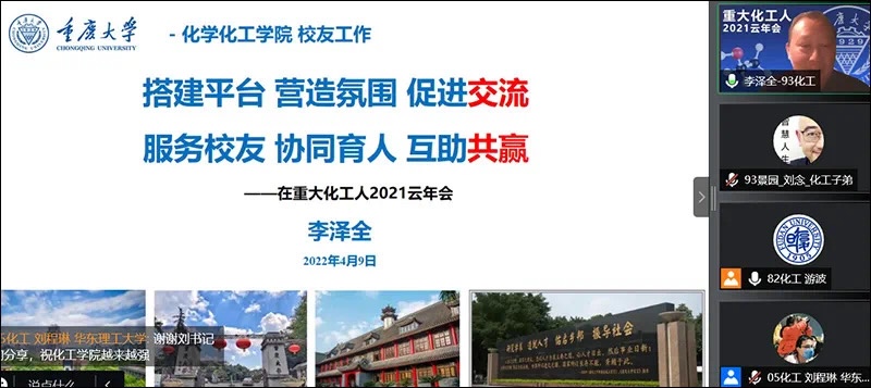 相聚的时间虽然有限,但重大校友之间的情谊绵长不断。云相会交流学术,分享各自成功的喜悦、表达困惑以及克服困难的经历,这正是重大化工人的凝聚力!