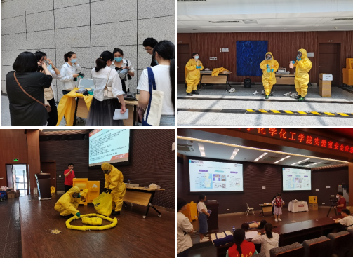 值得一提的是,气体泄露应急处置演练和危化品泄露事故应急演练采用情景剧的方式,由志愿者现场演绎安全事故的发生、事故报告和快速应急处置全流程,让师生身临其境,印象深刻。现场同学也积极参与实操,以便牢固掌握有毒气体泄漏或危险化学品泄漏情况下的应急处置技能。