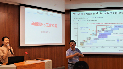 学术报告环节由两部分组成,分别由院长助理李存璞老师和赵朔老师主持。其中,陈红梅老师介绍了其所在的新能源化工团队,包括了团队成员、发展潜力和研究方向,尤其针对目前我国的能源现状,团队做出的规划和努力;范兴老师介绍了其所在的绿色化工团队;勾茜老师展示的主题为“从微观到宏观——用分子光谱看世界”;李葆生老师则介绍了其研究的主要课题——方法学的发展及在氮杂环药物分子中的合成应用。第二部分中,董立春老师从化工过程的数据采集、控制集成优化、可持续评价等方面,说明了化工系统的概念,展示了化工过程强化团队目前的研究课题和研究方法;黎学明老师介绍了功能性电极制备及应用性能研究;龚云老师介绍了纳米材料在能源转化领域的应用;冯刚老师介绍了微波光谱与团簇结构及反应动力学。