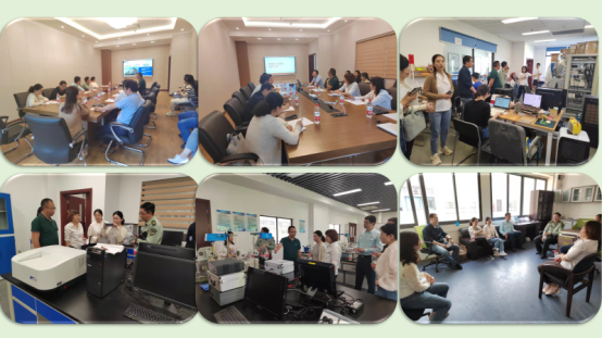 一行人参观理科楼我院分子光谱科研实验室、绿色化工实验室、大型仪器室以及第二实验楼物理化学实验室、大学化学实验室等部分实验室。在参观过程中,对实验室建设以及实验课程内容进一步进行了深入交流。