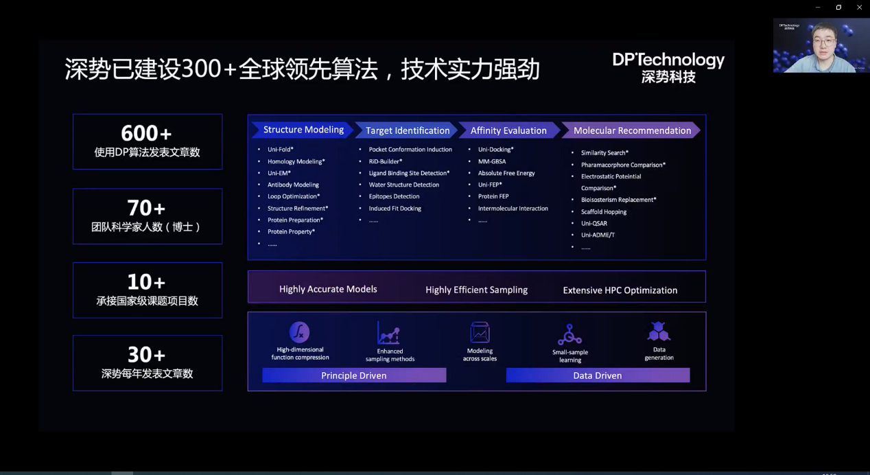 深势科技是“AI for Science”科学研究范式的引领者和践行者,致力于运用人工智能和分子模拟算法,结合先进计算手段求解重要科学问题,为人类文明最基础的生物医药、能源、材料和信息科学与工程研究打造新一代微尺度工业设计和仿真平台。