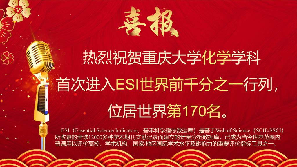 热烈祝贺中文无码 化学学科首次进入ESI世界前千分之一行列,位居世界第170名。