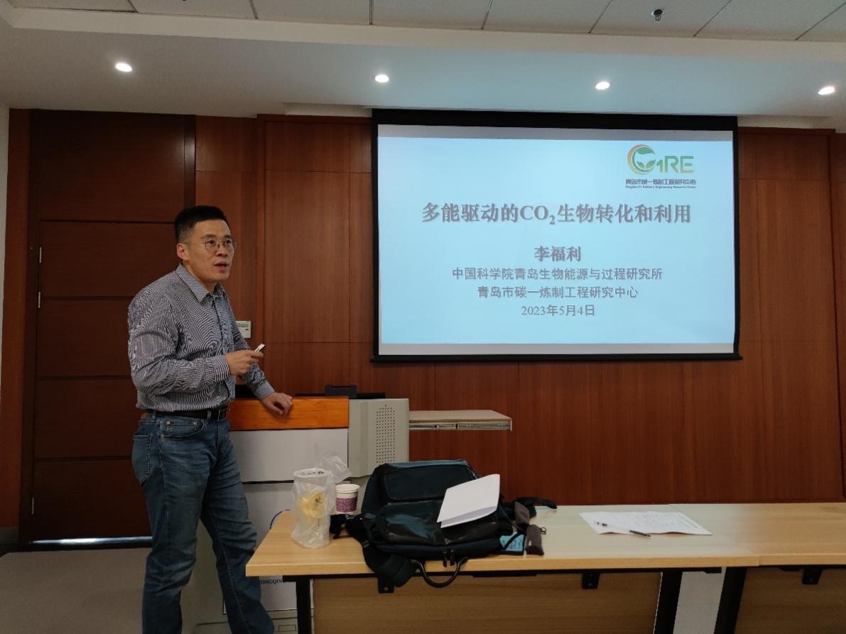 王丹教授首先向在场师生介绍主讲嘉宾,李福利研究员目前任研究所学术委员会副主任,青岛市碳一炼制工程研究中心主任,国际能源署(IEA)任务39脱碳运输燃料中国代表,Frontiers in Bioengineering and Biotechnology副主编,生物工程学报编委,青岛市微藻产业学会理事长,山东省微生物学会常务理事等。
