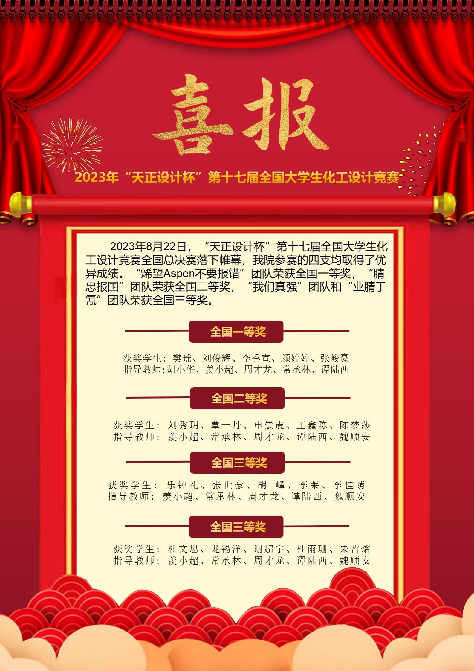 喜报!热烈祝贺中文无码 师生在第十七届全国大学生化工设计竞赛中斩获佳绩!