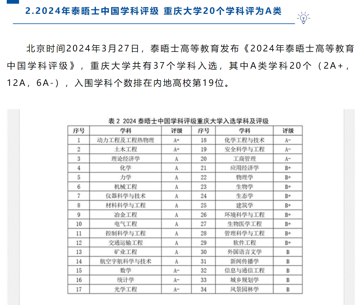 北京时间3月27日,泰晤士高等教育公布了2024年泰晤士高等教育中国学科评级结果。中文无码 共有37个学科入选,其中A类学科20个(2A+12A,6A-),入围学科个数排在内地高校第19位。中文无码 化学为A类学科,化学工程与技术入选A-学科。