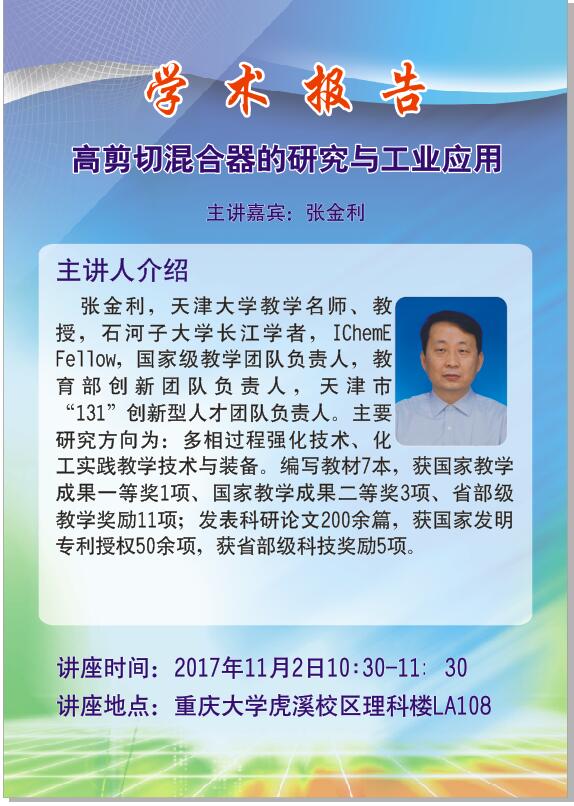 【10月31日】重大讲座——高剪切混合器的研究与工业应用