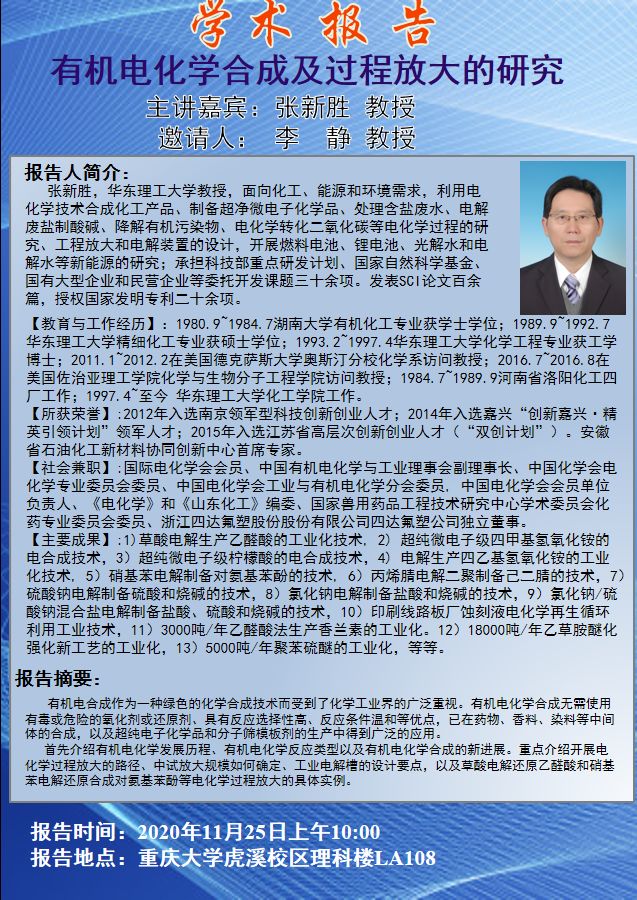 有机电化学合成及过程放大的研究 张新胜教授