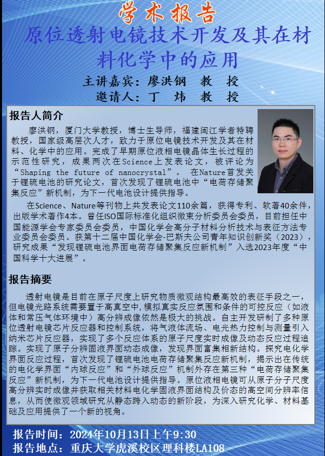 原位透射电镜技术开发及其在材料化学中的应用