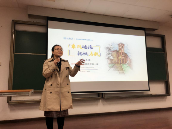 生涯规划课由姜鲁宁老师主讲,姜老师以张宗益校长对2020级新生寄语的视频为开场,张校长希望同学们通过对“智”“学”“勤”“友”四个问题的探讨,尽快找准目标把握未来。紧接着姜老师用“大”“美”“暖”“靓”“强”五个字简单而准确的表达了大学的各个方面。