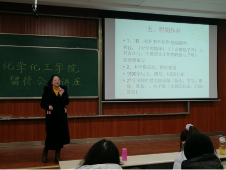 她指出职业规划与新生研讨课对于同学未来发展的重要意义,希望同学们将个人未来发展与国家建设相联系,尽早确立自己的发展目标,为国家进步做出自己的贡献。