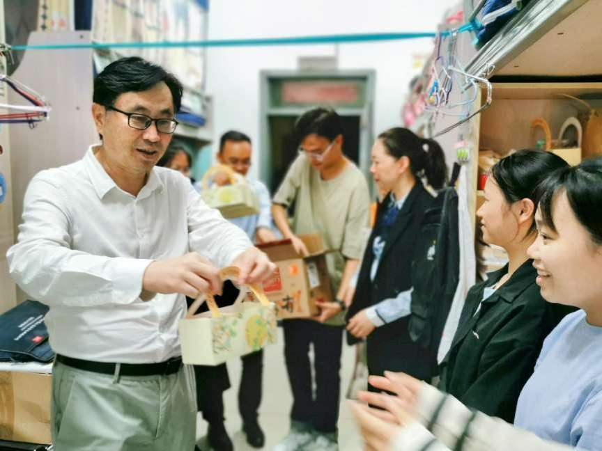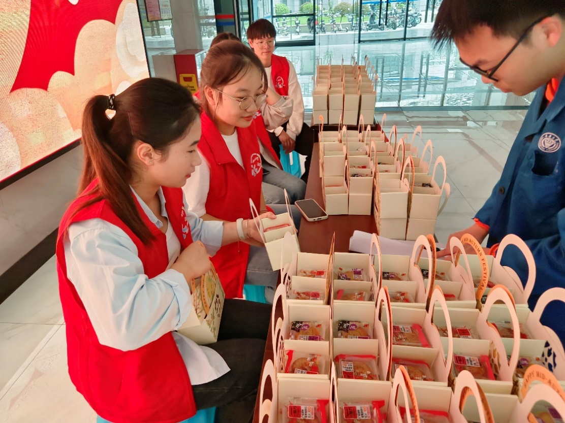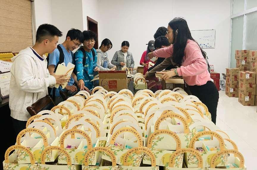 为在校同学们送上了精心准备的月饼和满满的祝福。