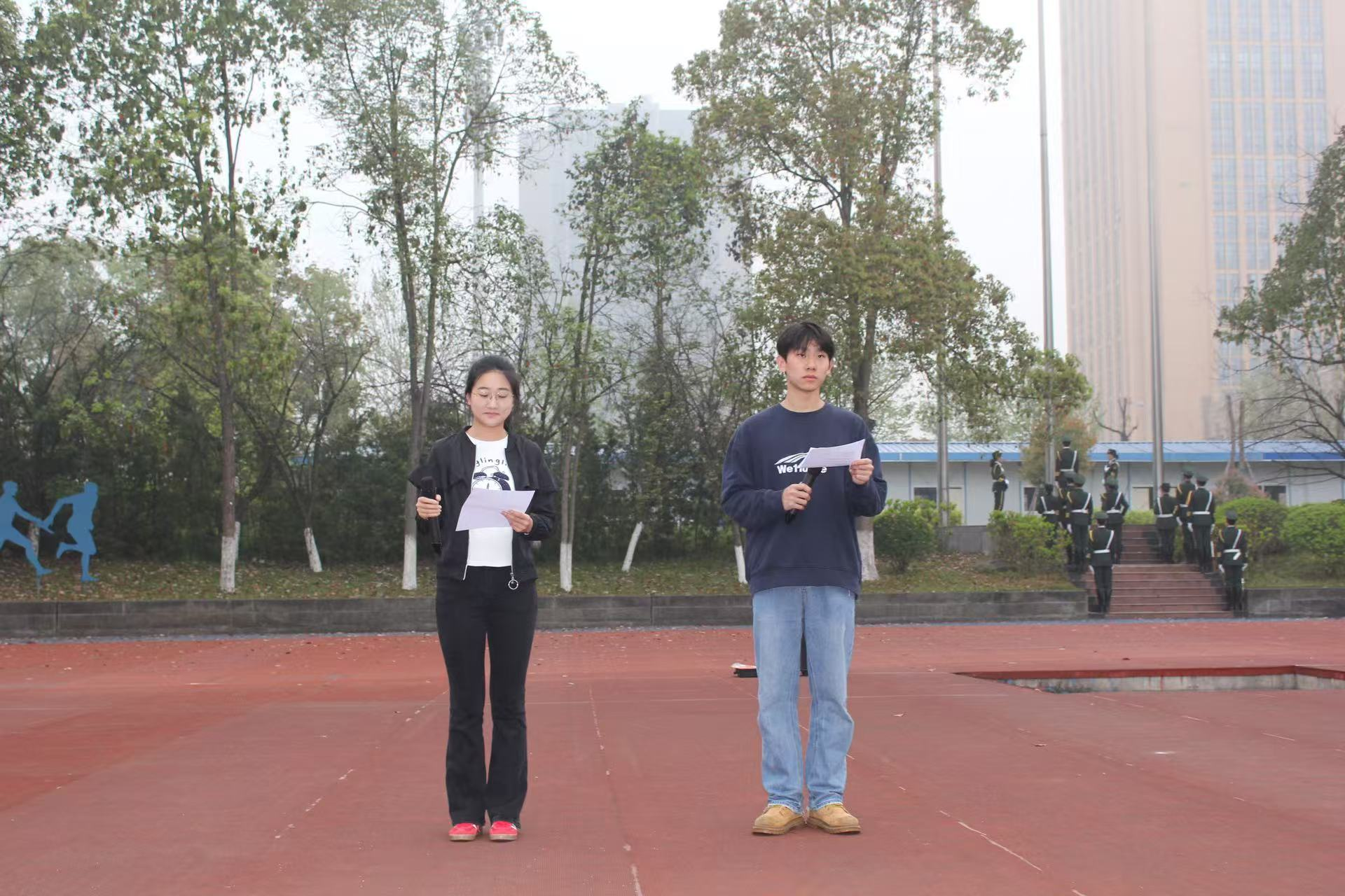 “国旗下诗朗诵”,领读员李瑶月同学和吕俊泽同学带领全体同学们铿锵有力地朗诵《山河赋色,红旗飘扬》,激发出大家于青春,于社会以及于祖国的青年人的担当。