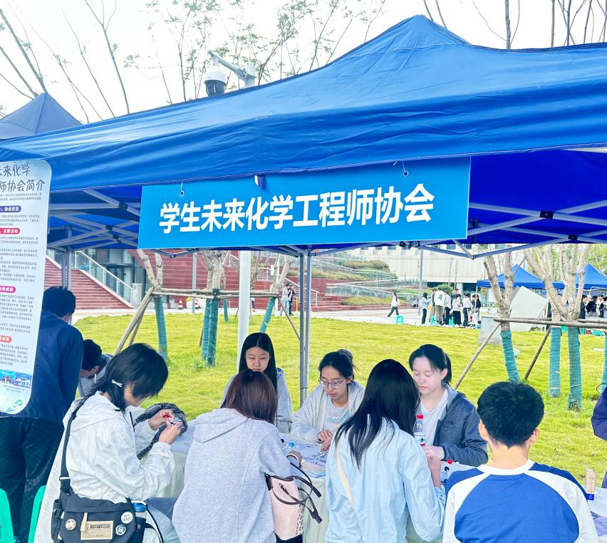 未来化学工程师协会在科学城校区体育馆开展“百团纳新”活动,正式开启新学年的社团招募篇章。活动全程秩序井然,吸引了许多学子驻足参与,现场氛围热烈非凡。