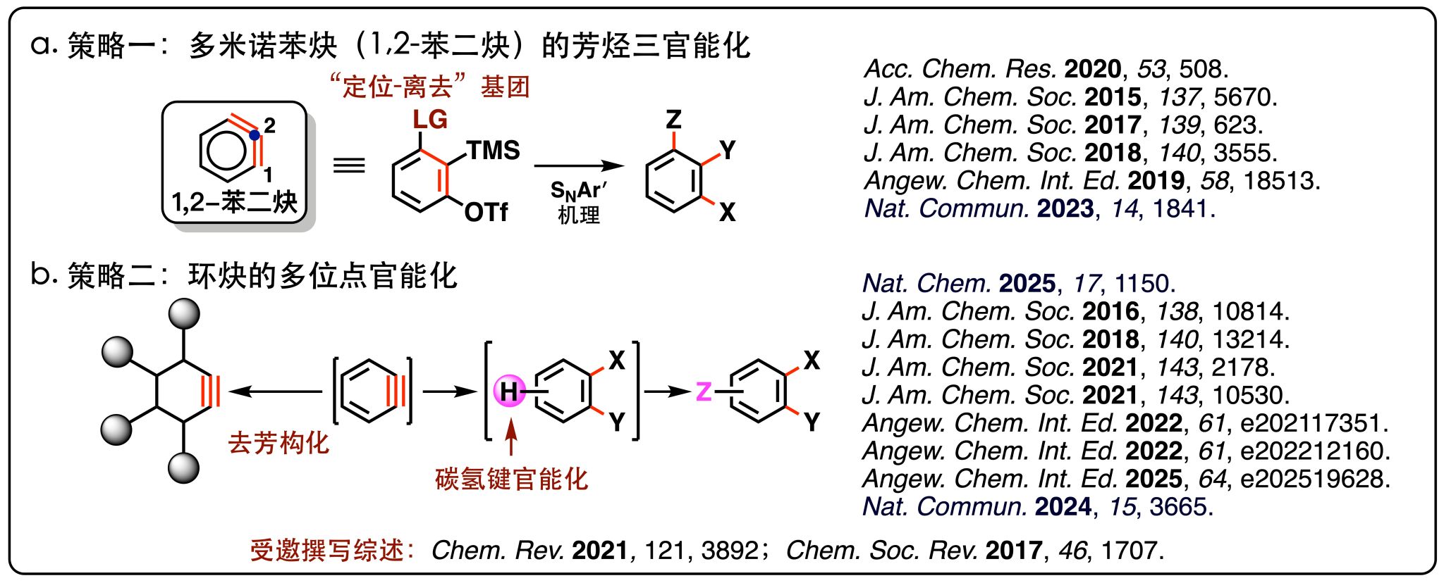 [8] Jia He; Dachuan Qiu; Yang Li* “Strategies toward Aryne Multifunctionalization via 1,2-Benzdiyne and Benzyne” Acc. Chem. Res. 2020, 53, 508-519.